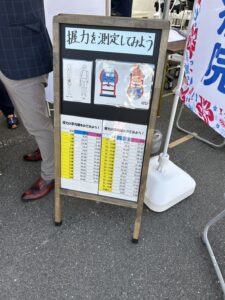 1日目は、看護部によるキッズナース服体験・血圧測定、リハビリテーション部による握力測定や認知機能測定を実施しました。