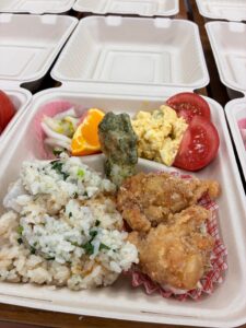 早朝ボランティアで61食の弁当づくり