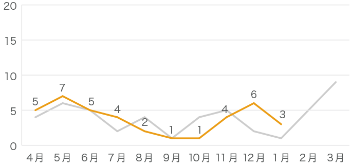 昨年のデータはグレーの線で示しています。