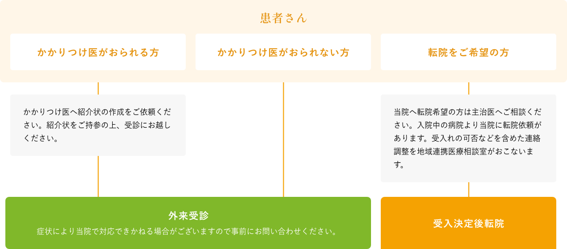 1階医療相談室にお越しいただくか、各病棟ステーションの医療相談員へお声をおかけください。